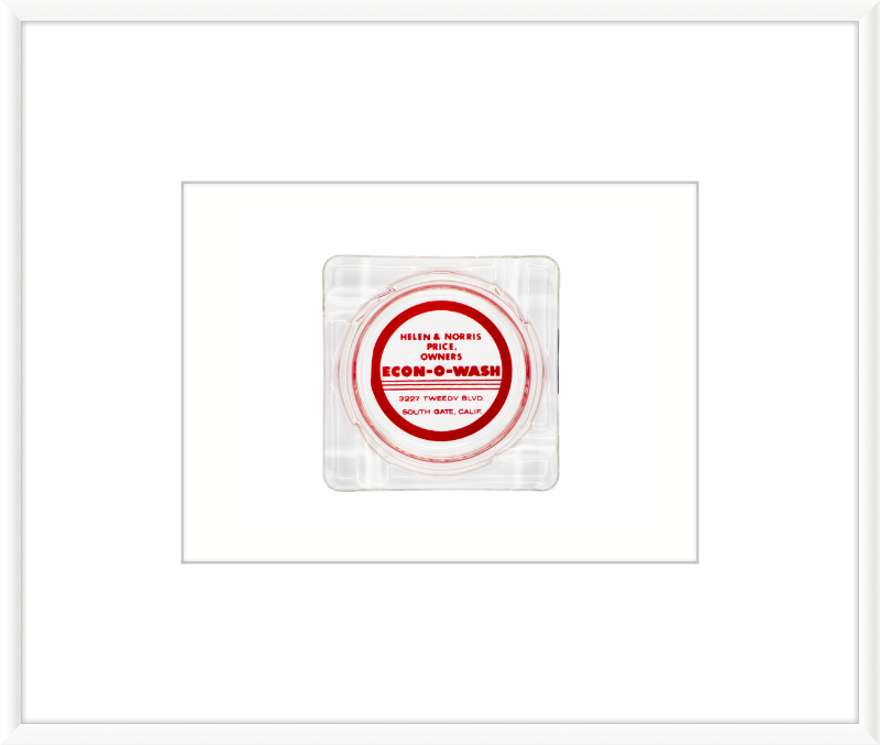 A high quality art print of an ashtray from Econ-O-Wash, South Gate, California. Vintage, circa 1960s. Framed in 3/8" extruded aluminum metal. Made in the USA.