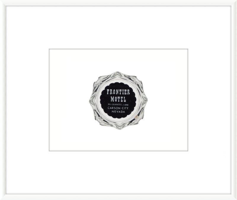A high quality art print of an ashtray from the Frontier Motel, Carson City, Nevada. Vintage, circa 1950s. Framed in 3/8" extruded aluminum metal. Made in the USA.