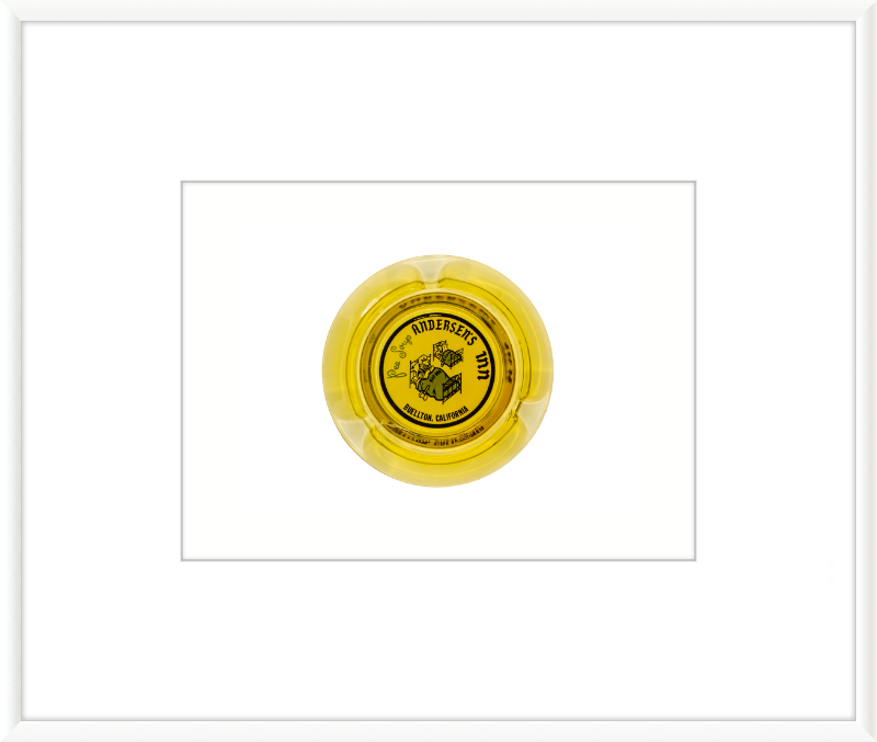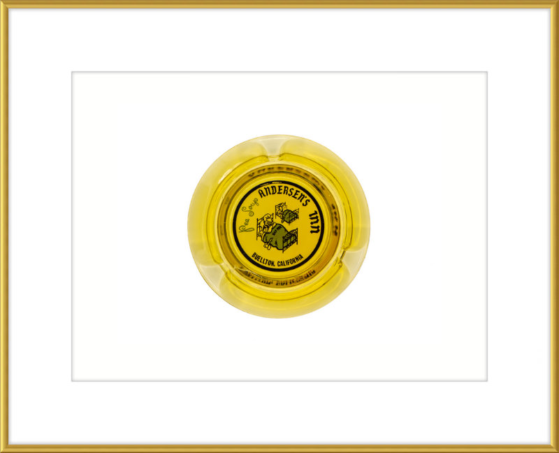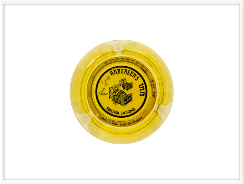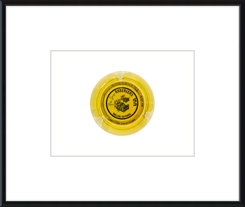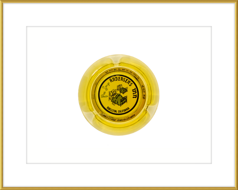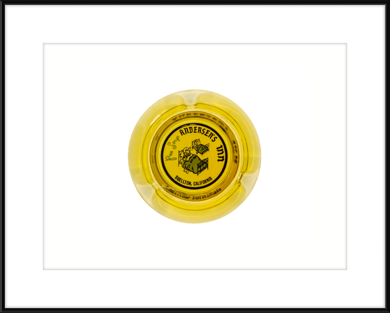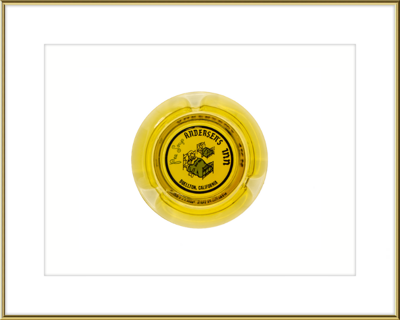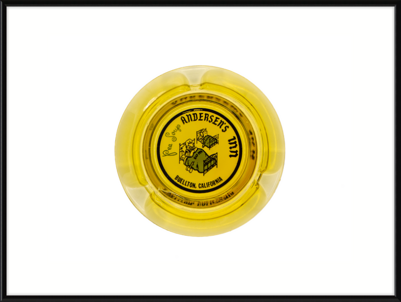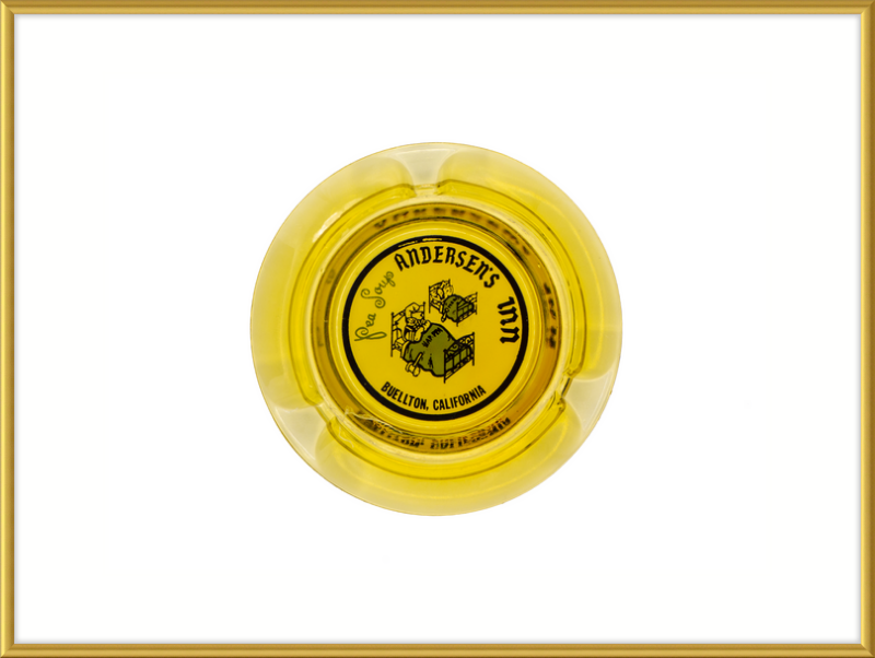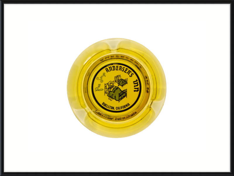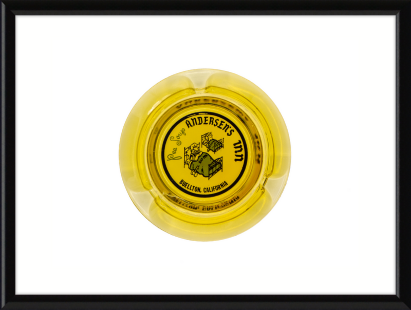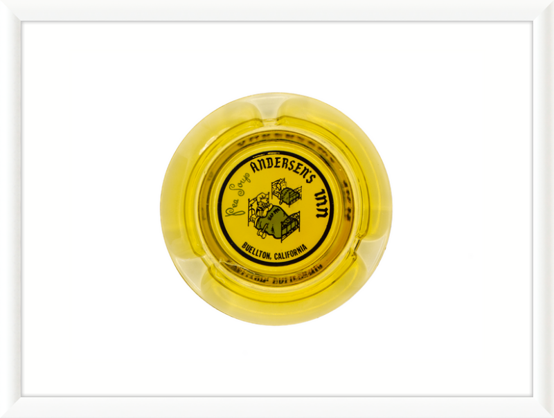 A high quality art print of an ashtray from Pea Soup Andersen's Inn, Buellton, California. Vintage, circa 1950s or 1960s. Framed in 3/8" extruded aluminum metal. Made in the USA.